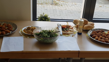 Auf Vorschlag mehrerer Migrantinnen hat die „Willkommensgruppe“ am 23. Oktober 2021 zu einem „Arabischen Buffet“ im Emmaus-Gemeindehaus eingeladen. 22 Gäste konnten lukullische Genüsse verspeisen, die von offenbar begabten Köchinnen und Köchen mehrerer Familien beigesteuert wurden. Mehr ist im Bericht zu lesen.