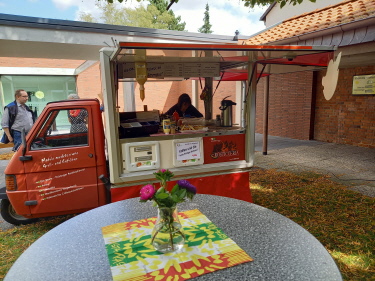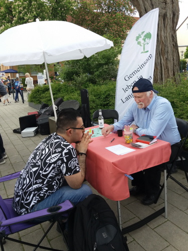 Unsere "Willkommensgruppe" durfte sich mit einem kleinen Stand beteiligen und wurde durch Eva und Horst vertreten. Auf einer Stellwand wurden Kurzberichte von unseren Aktivitäten ("best of") der letzten drei Jahre als "Foto-Reports" präsentiert.