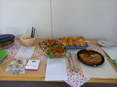 Zu den mitgebrachten Speisen wurde vorab um die Rezepte gebeten. Daraus ist die kleine Sammlung von 12 Rezepten in einem Rezeptheft entstanden.