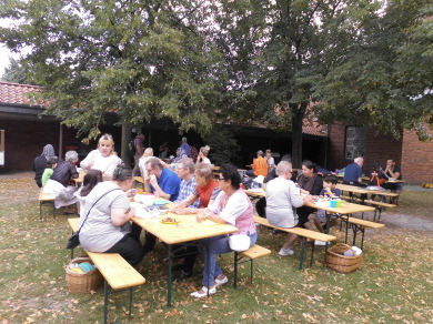 Die „Willkommensgruppe“ hat betreute und betreuende Menschen zu einem internationalen Picknick am Samstag, 28.09.2024 zur Emmausgemeinde eingeladen. Da es ziemlich kühles Wetter gab, fand das Picknick im Gemeindesaal statt.