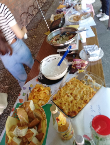 Die Speisen, Geschirre und Bestecke wurden mitgebracht, Getränke wurden vom Verein angeboten. So entstand ein Buffet mit leckeren Salaten, Vor- und Hauptspeisen, und etwas „Nachtisch“. Das Angebot war sehr vielfältig und, wie zu erwarten war, es konnte nicht alles verzehrt werden.